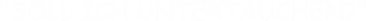 In der Regel ist das Untertauchen keine sinnvolle oder legale Lösung für Probleme. Wenn Sie sich in einer gefährlichen Situation befinden oder bedroht fühlen, sollten Sie sich umgehend an die Polizei oder andere autorisierte Stellen wenden, um Ihre Sicherheit zu gewährleisten.