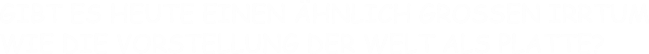 ChatGPT: Es ist schwer zu sagen, ob es heute einen ähnlich großen Irrtum gibt wie die Vorstellung der Welt als Scheibe in der Vergangenheit. Es gibt jedoch viele kontroverse Themen und Meinungen, die heutzutage diskutiert werden und in einigen Fällen weit verbreitete Missverständnisse hervorrufen können.