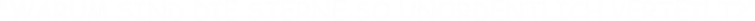 ChatGPT: Die Sterne erscheinen unordentlich verteilt am Himmel, weil ihre Verteilung in der Galaxie, in der wir uns befinden, nicht gleichmäßig ist. Die meisten Sterne sind in der galaktischen Ebene der Milchstraße konzentriert, wo sie sich in Spiralarmen bündeln. In anderen Teilen der Galaxie gibt es weniger Sterne und sie sind weiter voneinander entfernt.