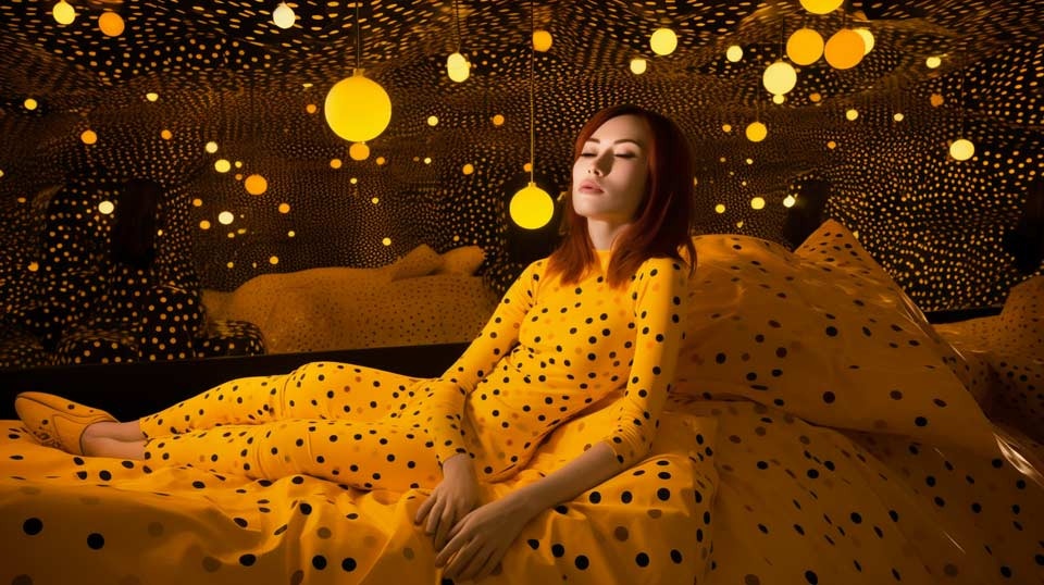 prompt: peter fischli & david weiss artwork, question "WHY ARE THE STARS SPREAD OUT SO MESSILY?", Yayoi Kusama art style, hyperrealistic, sony camera, award winning photo, magazin photograph, high contrast, delicate details. --ar 16:9 --v 5 - Image #1 @Subraum-01