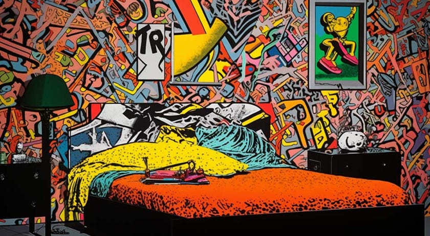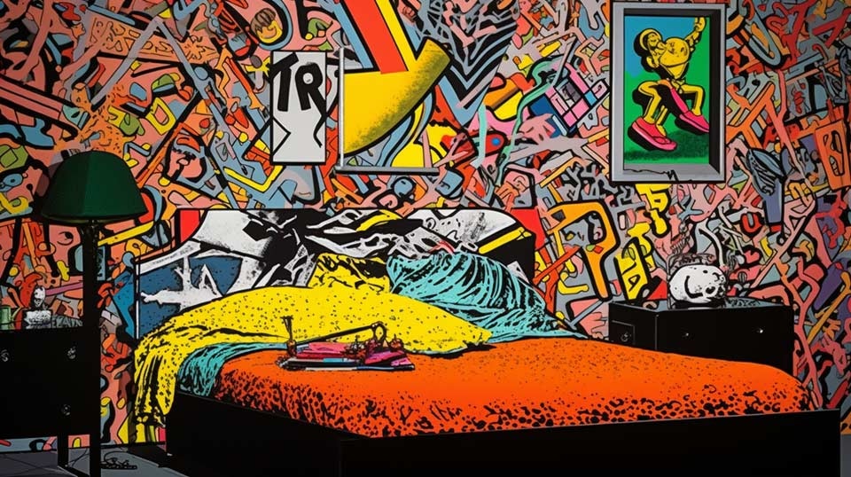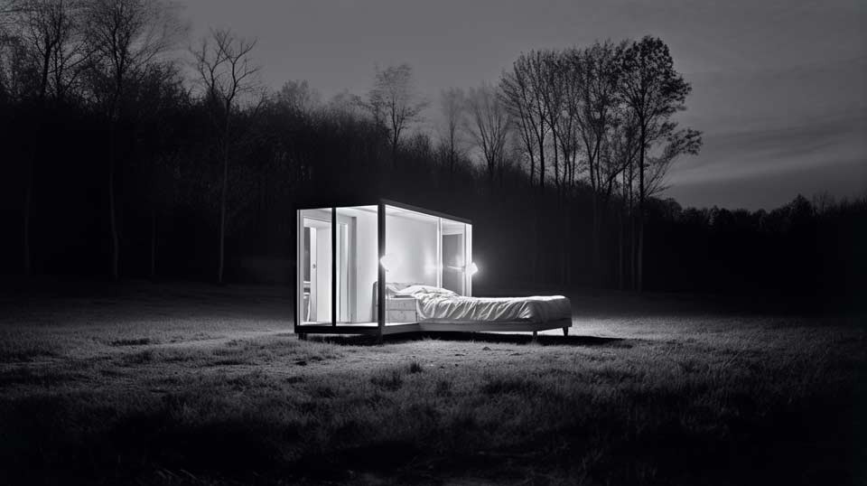 prompt: peter fischli & david weiss artwork, question "Do I have to imagine death as a landscape with a house you can go into and a bed you can sleep in?", Picasso art style, high contrast, delicate details. --ar 16:9 --v 5 - Image #4 @Subraum-01