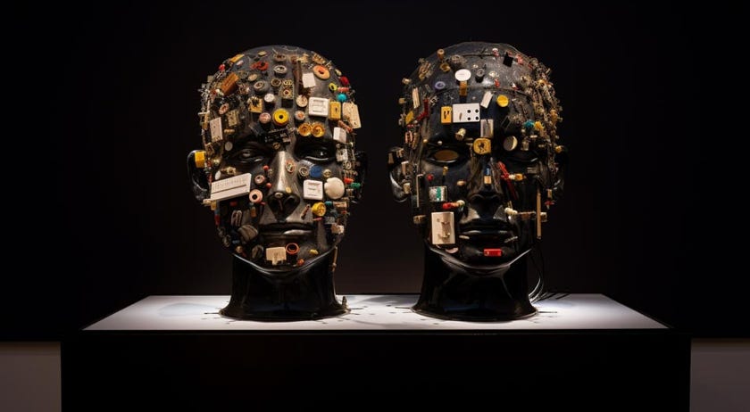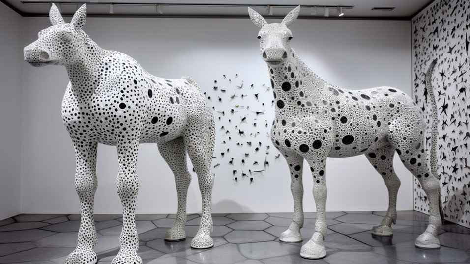 prompt: peter fischli & david weiss artwork, question "AM I A DONKEY?", Yayoi Kusama art style, high contrast, delicate details. --ar 16:9 --v 5 - Image #1 @Subraum-01