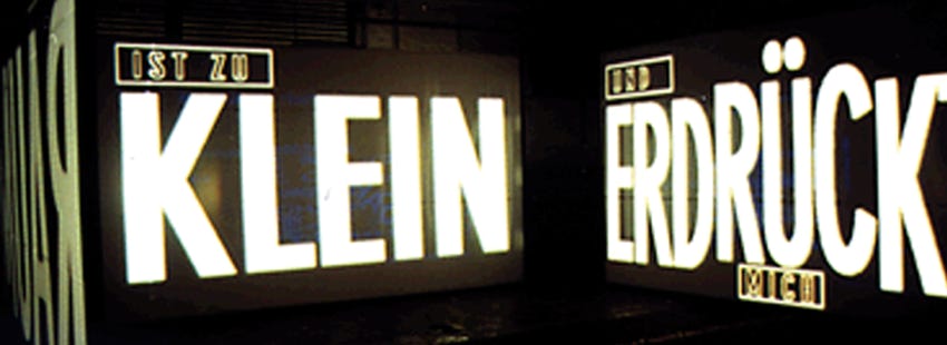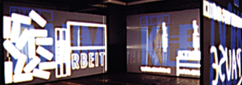 Die Addition von hartem Raum, Projektionen auf oder in den Wänden, das Hineinlesen in die Raumbeschreibungen und die Gedankenräume der Betrachter ergeben ein neues Ganzes und formulieren so den Transversalen Raum.