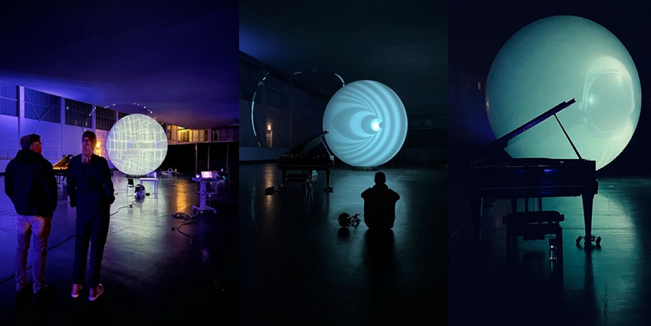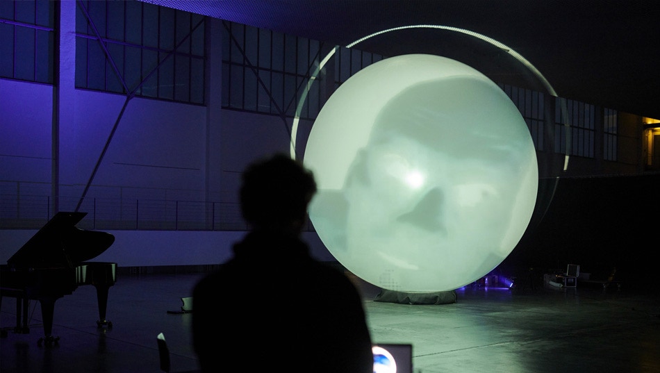 Zusätzlich wurden Videos und Animationen auf die filigrane Oberfläche des Ballons projiziert, um ein visuelles Feedback zu erzeugen.